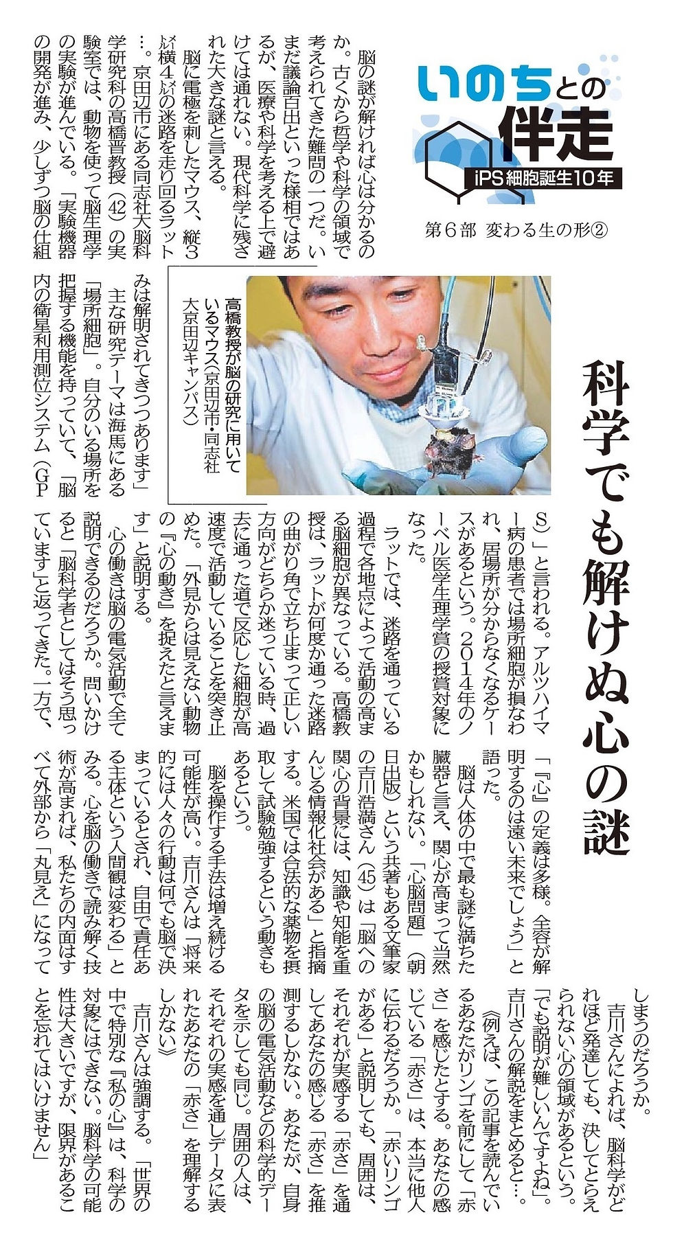 髙橋研究室の研究内容とコメントが京都新聞に掲載2017/12/23(土)